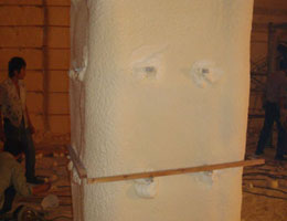 (2)噴涂發(fā)泡成型的泡沫保溫層的形狀與基材物體形狀一致;無接縫,絕熱效果好;泡沫層外部有一層致密的保護(hù)皮層,能較好地保護(hù)內(nèi)部芯材,同時(shí)還容易進(jìn)行外表面的涂料涂刷和進(jìn)一步修裝;